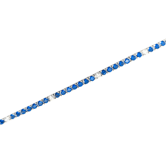 Bracciale tennis in argento 925 color argento con zaffiri sintetici e zirconi