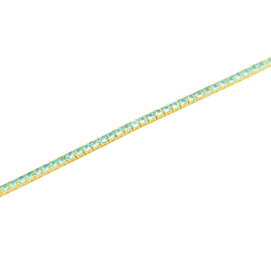 Bracciale tennis in argento 925 color oro con topazi azzurri 21 cm