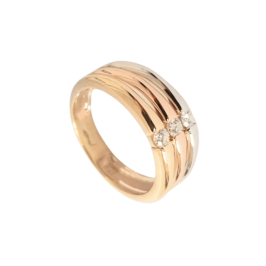 Anello a fascia 3 ori, rosso, giallo e bianco 18 kt con diamanti ct 0,15
